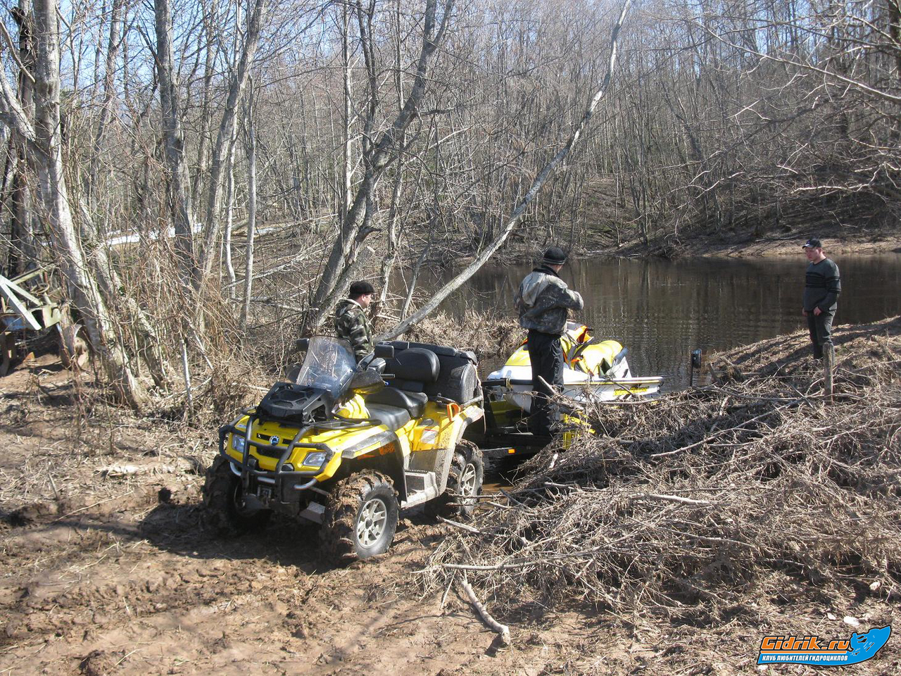 Место спуска вполне нормальное-главное прицеп поместился между пнем и кучей веток