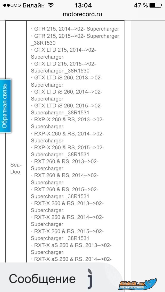 andreyf писал(а): Yuri299 писал(а): andreyf писал(а): Сезон все ближе и ближе Ремкомплект на какой? На какой что? Если Аквабайк то на BRP от 215 до 260 мотора На 260 турбина другая, чем у 215 и 255, как он может подойти? Мне надо на прозапас на 260.