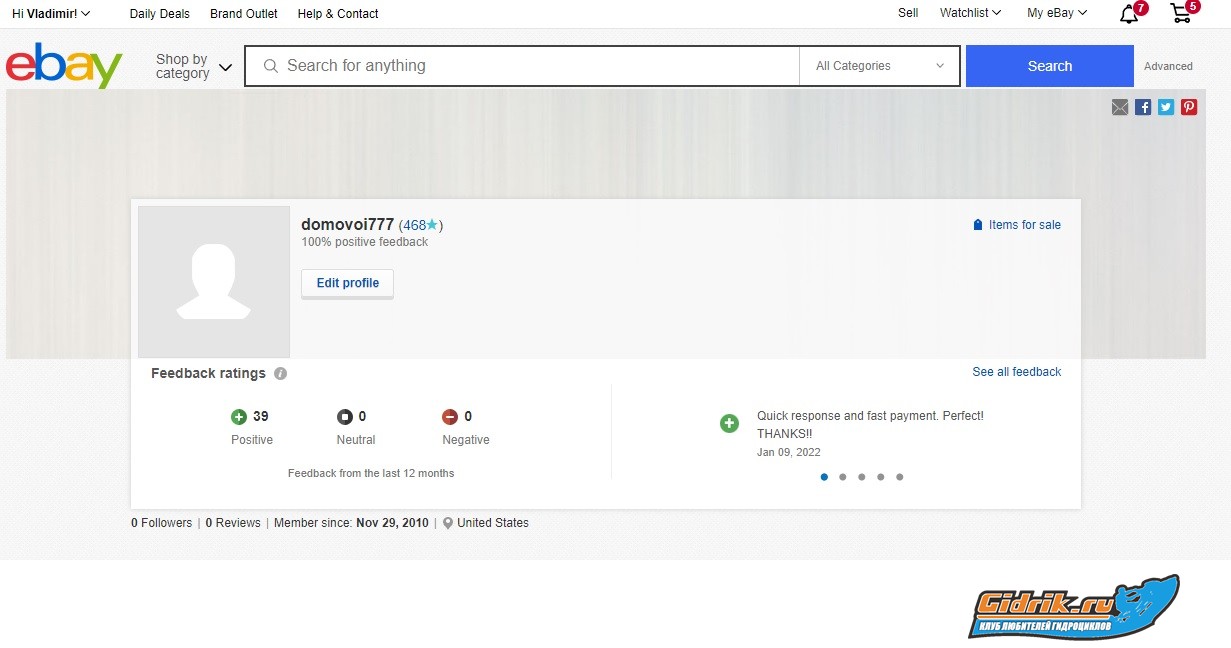 Доброго! Я знаю... В прикрепленном файле мой профиль на Ebay