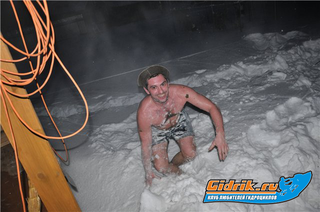 а вот так мы ходим в баню со снежными процедурами