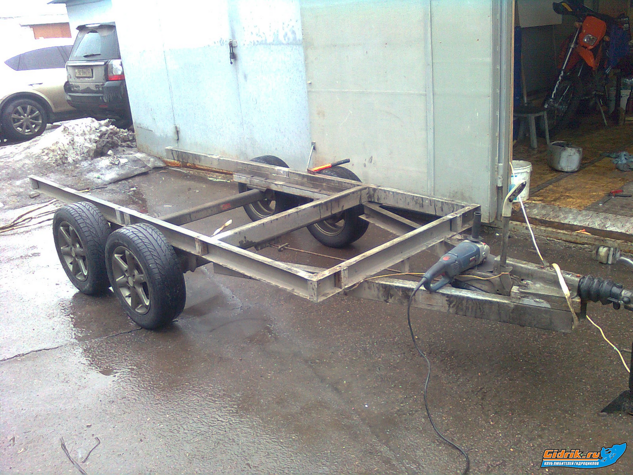 Да закупленны рессоры от москвича, крепеж точат уже токаря на заводе, появилоь упорное колесо от оригинальной тележки, появилась лебедка, нуждающаяся в ремонте. Закуплена какаято хитровые.... пластиковая краска.