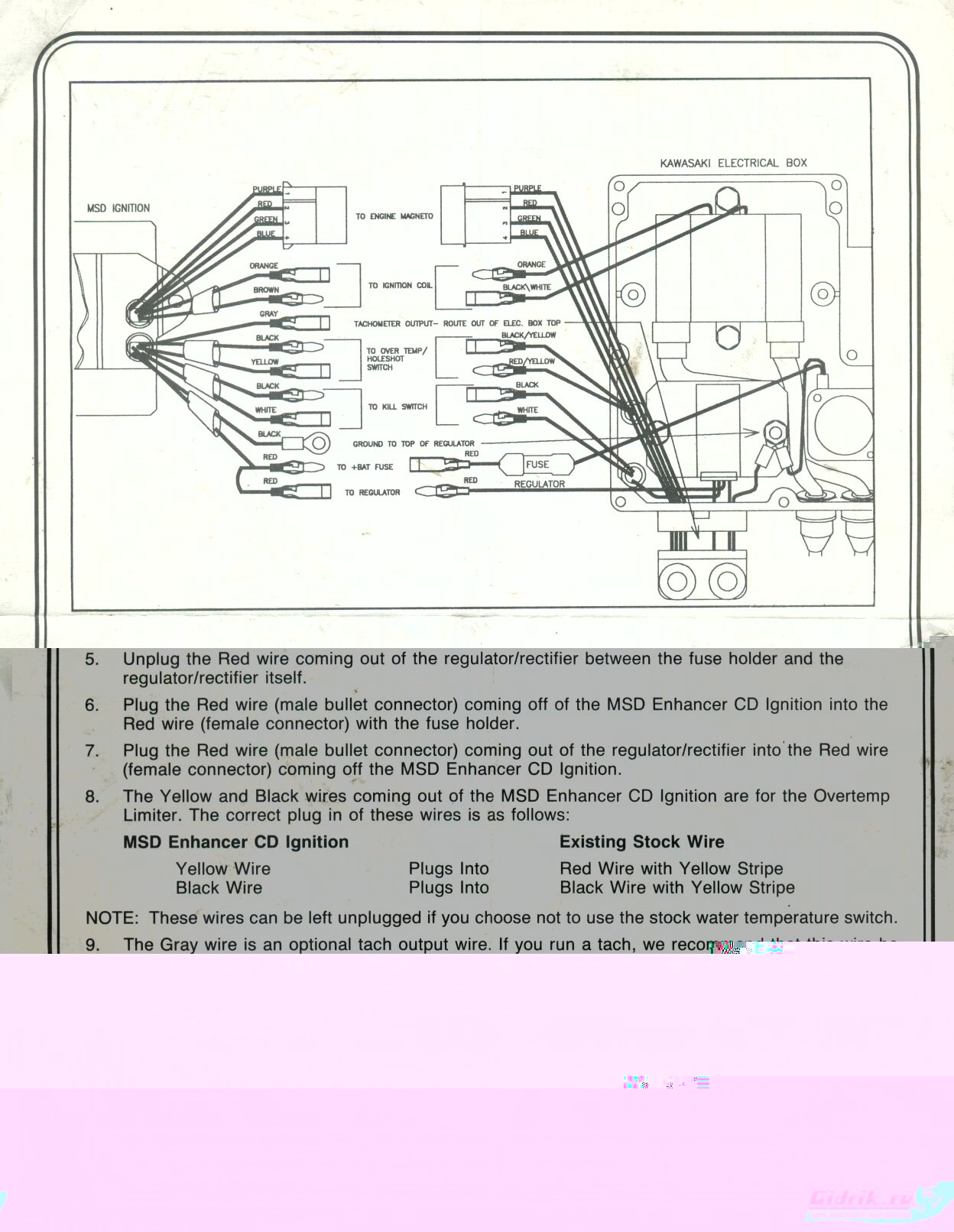 Спасибо большое. Такую инструкцию я нашел уже где-то на американских сайтах. Проблема в том что на sxr 800 нету фишки на 4 провода а только на два синий и зеленый, а фиолетовый и красный не понятно куда девать.